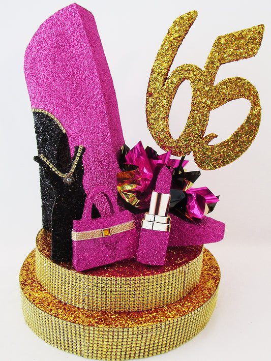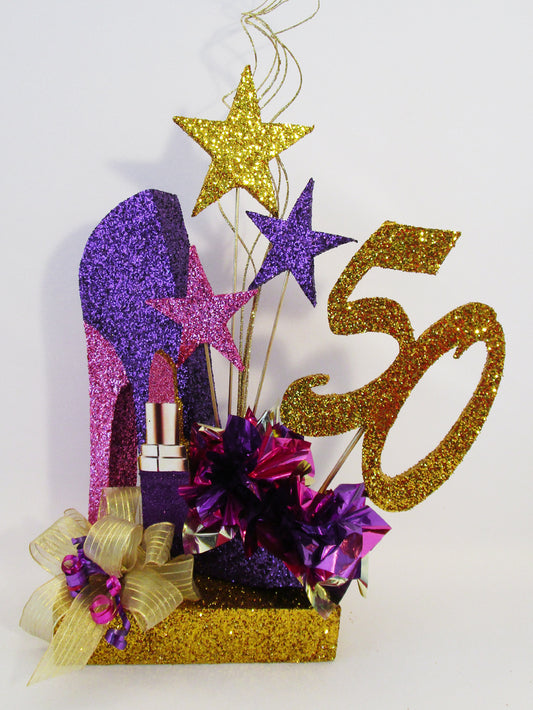 High Heel Shoe Centerpiece with Lipstick, Stars & Optional Print
