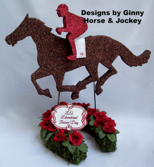 Kentucky Derby Styrofoam Horse & Jockey on Horse-shoe Centerpiece