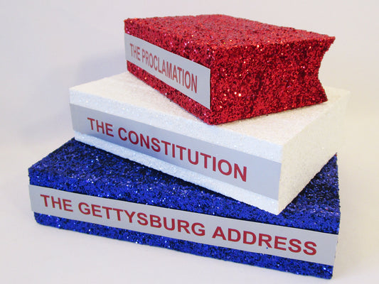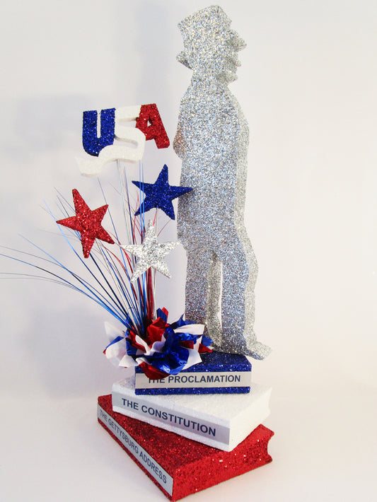 Abe Lincoln Cutout on Stack of Faux Books Centerpiece