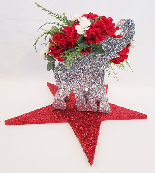 Patriotic American flag or GOP Elephant & silk red roses table centerpiece