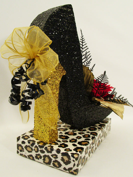 High Heel Styrofoam Boot with Leopard Fringe Birthday Centerpiece