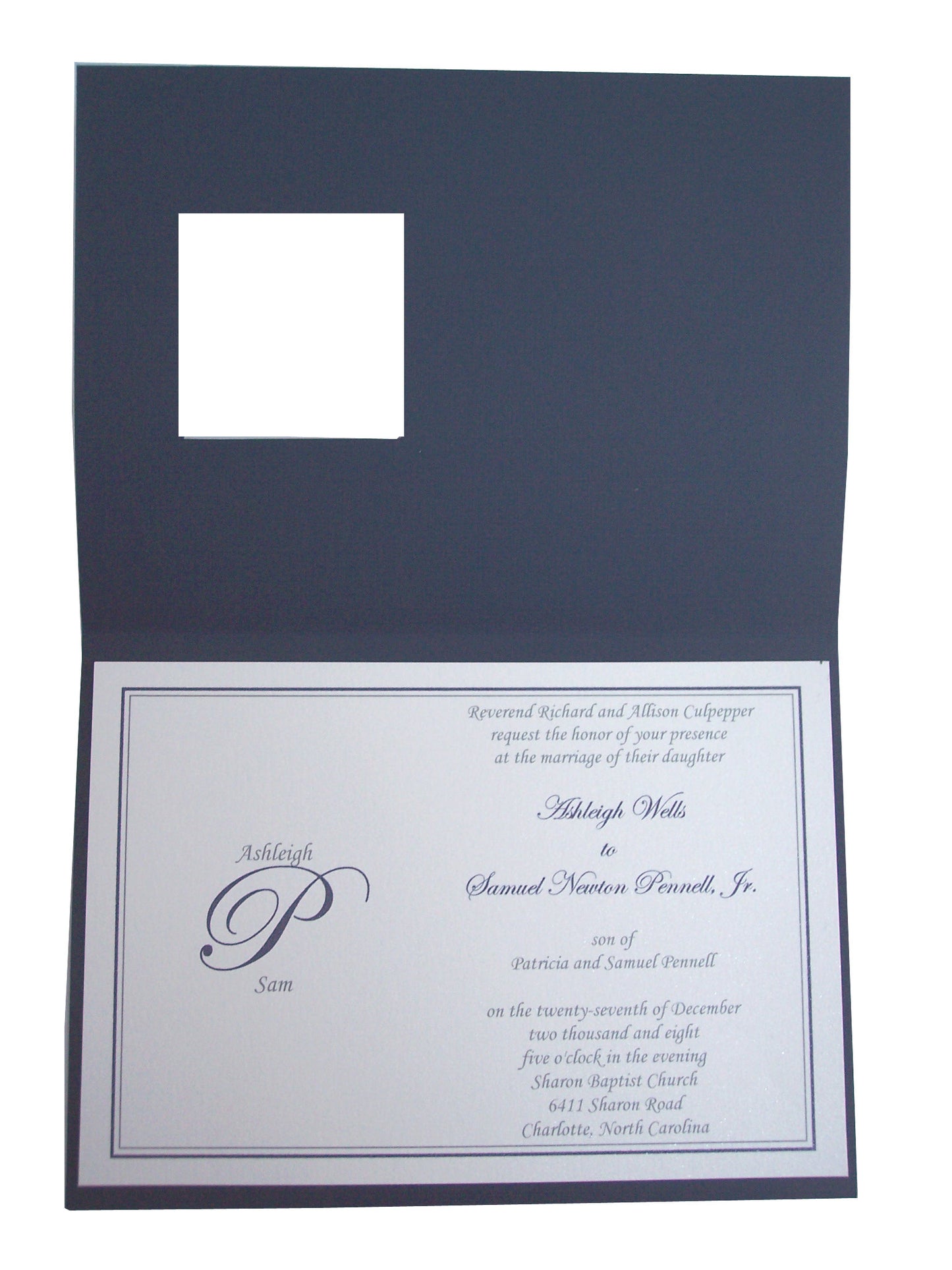 Navy fold-over Wedding Invite Sample
