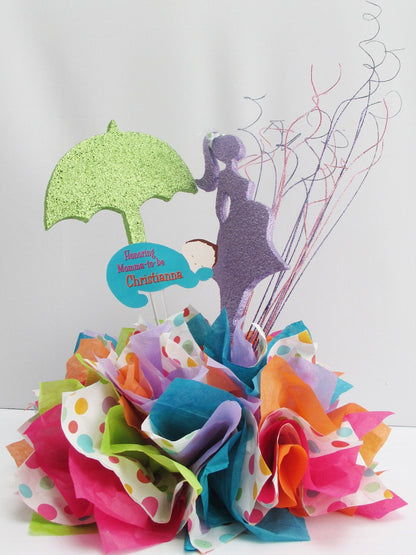 Baby Shower Pregnant Woman & Umbrella Centerpiece
